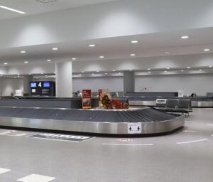 荷物受け取りカウンターで待つが、さきゅうの荷物がなかなか来ない。